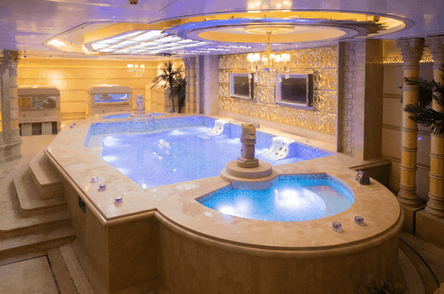 超大的泡池,采用的水处理系统可处理出达到直饮水标准的水质。四季恒温的水池,在繁忙的工作之余沐浴其中,让您体验慢节奏的生活与惬意时光。